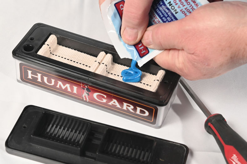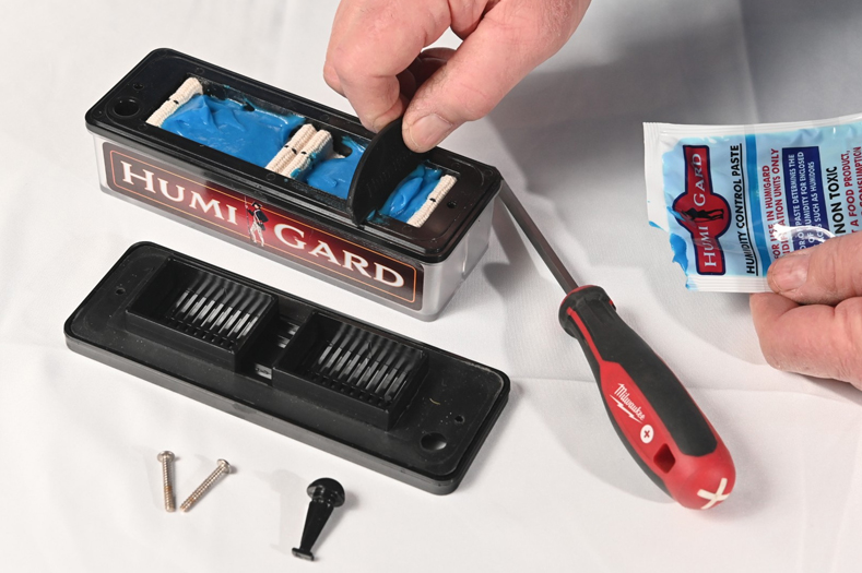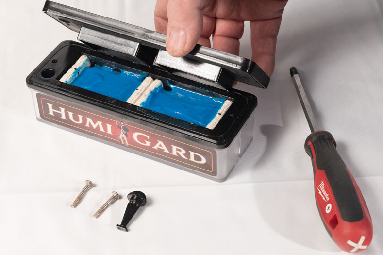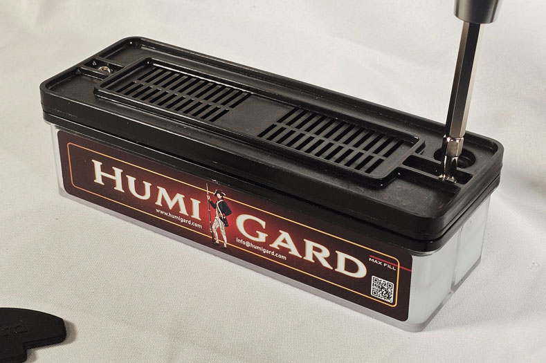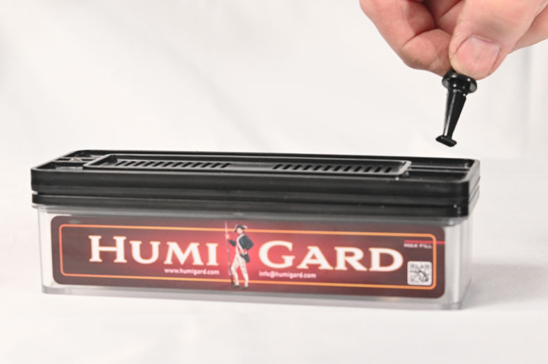 Place the humigard in the lower half of the humidor. Once the humigard is set up, it must be kept upright to avoid faulty results.